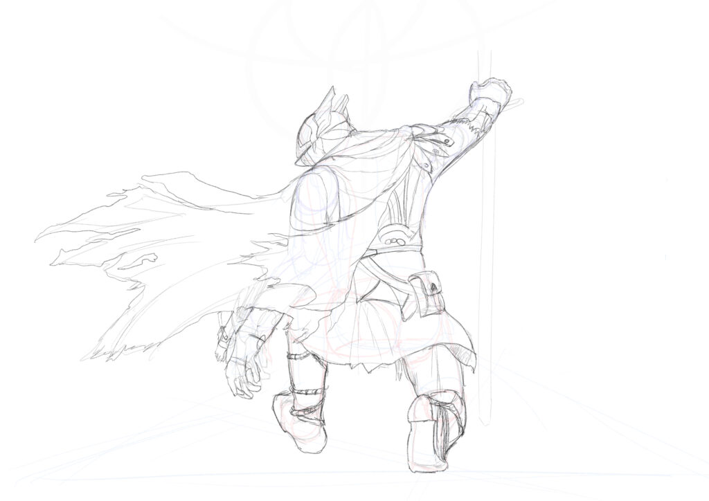 『エルデンリング ナイトレイン』より追跡者。やっぱり勉強が浅いせいで色塗りがへたっぴ……なにより、ゲームのキービジュアルとなるようなパケ絵がもとなので、難しいこと難しいこと。。